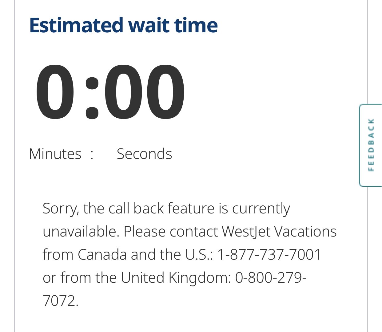 John Last On Twitter Wait Times For A Callback From The Main Westjet Line Will Take Me Until After My First Flight S Scheduled Takeoff Westjetvacation Shows No Wait Time But The Number